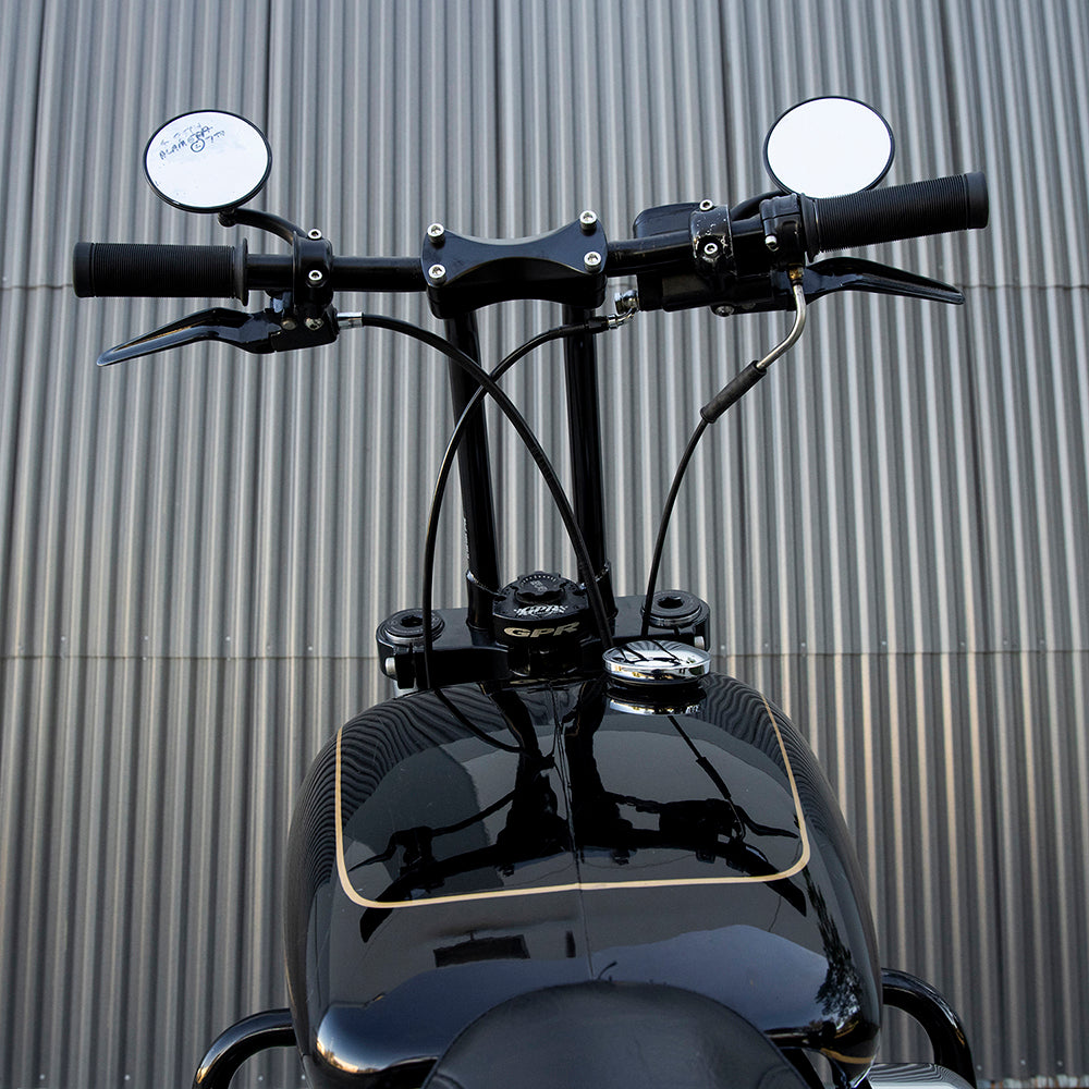 When we introduced our Murdock risers to the custom H-D scene, "club-style" Harleys were just gaining traction among high-performance riders on both coasts of the US. Our precision-crafted chromoly steel riser became a top choice among high-speed Dyna and Sportster riders. The 12 o'clock wheelie and tire-smoking crowd appreciated Murdock's stiffness and reliability compared to cast or CNC'ed aluminum risers instantly. Combined with any handlebar from our Tracker line, Murdock risers create a cockpit you can depend on for life in the fast lane.