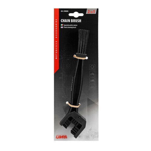 Scrub the chain with the compact bristles of the grunge brush to clean all four sides of a chain. Use the long bristled end to clean other components like sprockets, derailleurs, crankset, brakes. Ideal for cleaning the dirt of your chain before pre- lubrication.