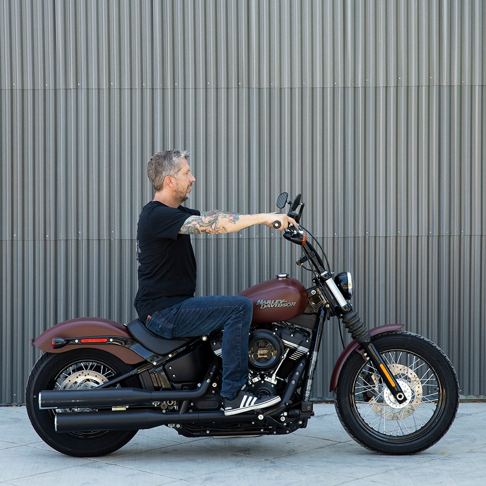 With a backsweep less severe than most stock handlebars, any Tracker in our range is a great replacement for riders who want to ditch the wheelbarrow feel of OE bars. When people ask for our advice on which Tracker to mate with any given Murdock riser, we recommend building a combo that puts your hands slightly below or even with the height of your shoulders when you're sitting comfortably on your motorcycle. Hands higher than shoulder height is popular, but it's a position better suited for experienced riders. If the cables and control wires on your bike prohibit going too tall or wide with your bars, combine our low or mid Tracker with some Slimline or Thunder risers for a clean, race-inspired, comfortable cockpit.
