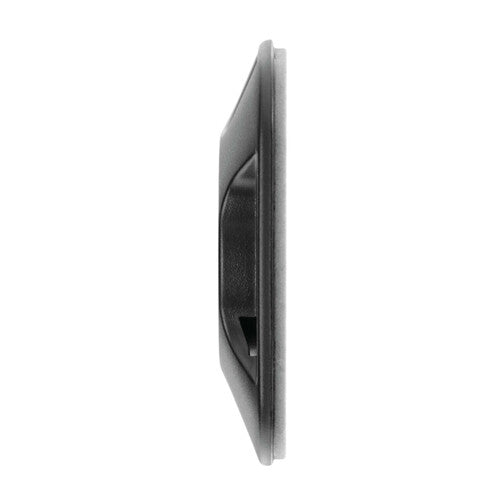 Adhesive base. Adheres to flat and slightly curved surfaces (non-textured, non-porous) like plastic and metal.