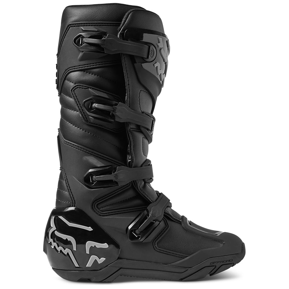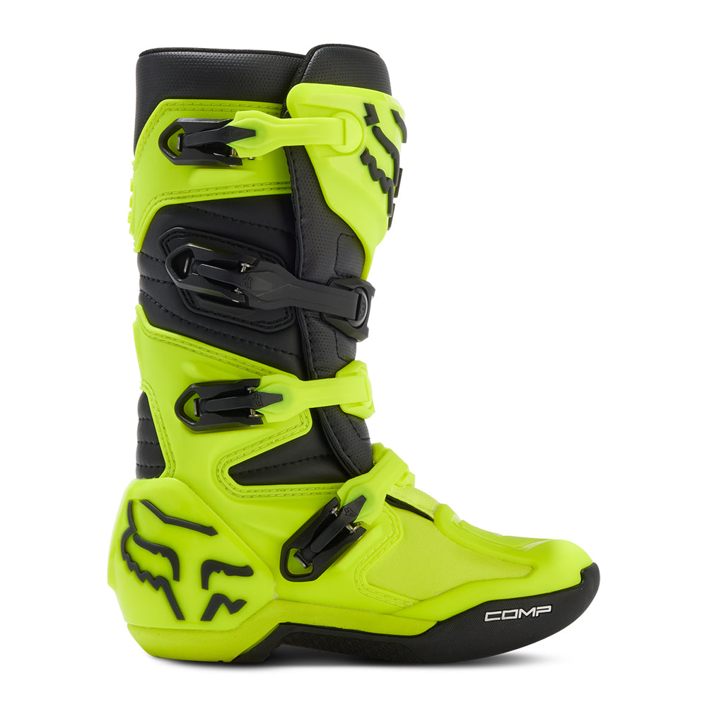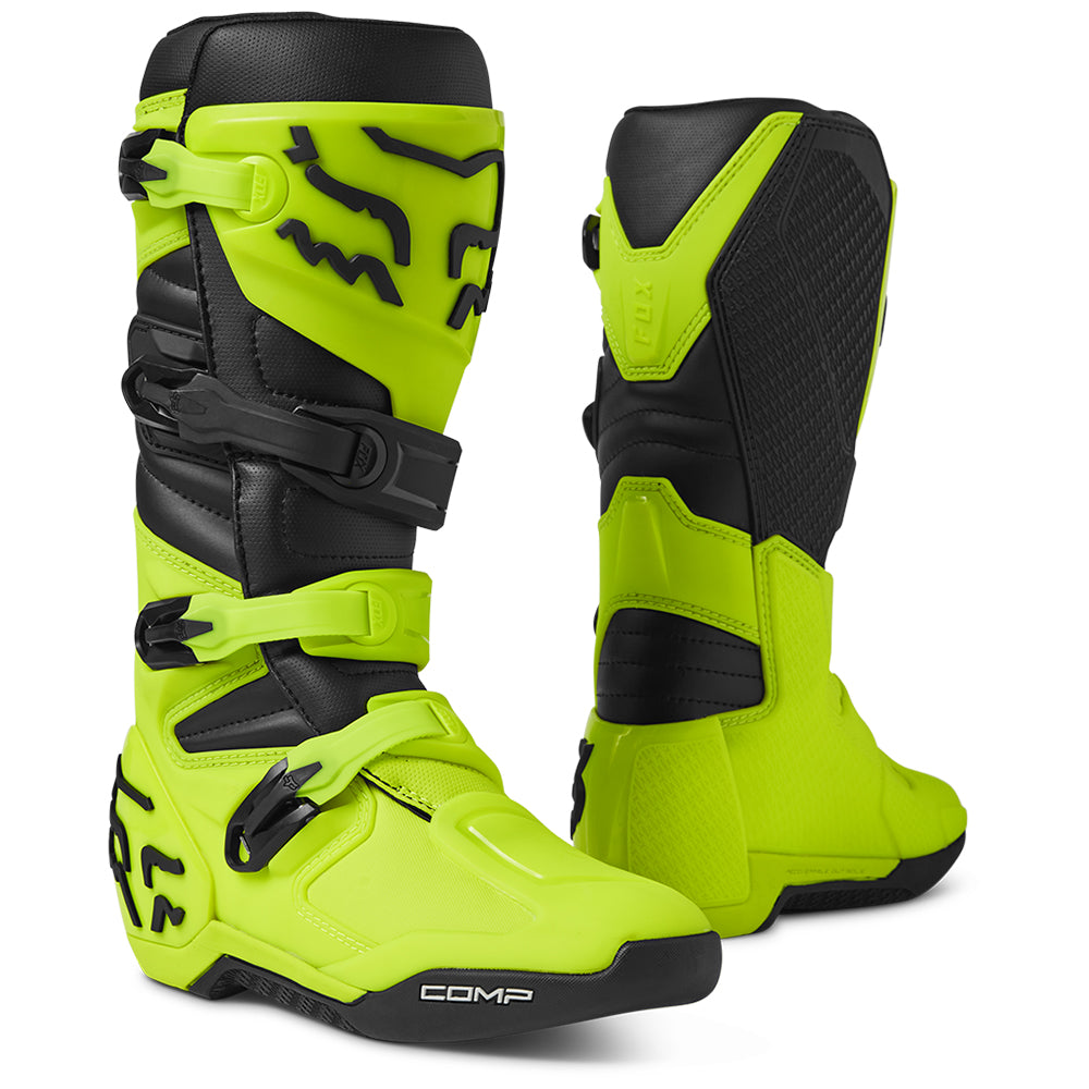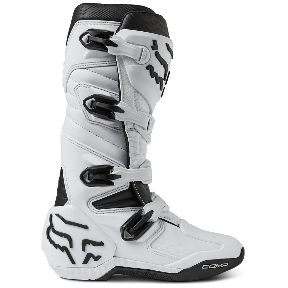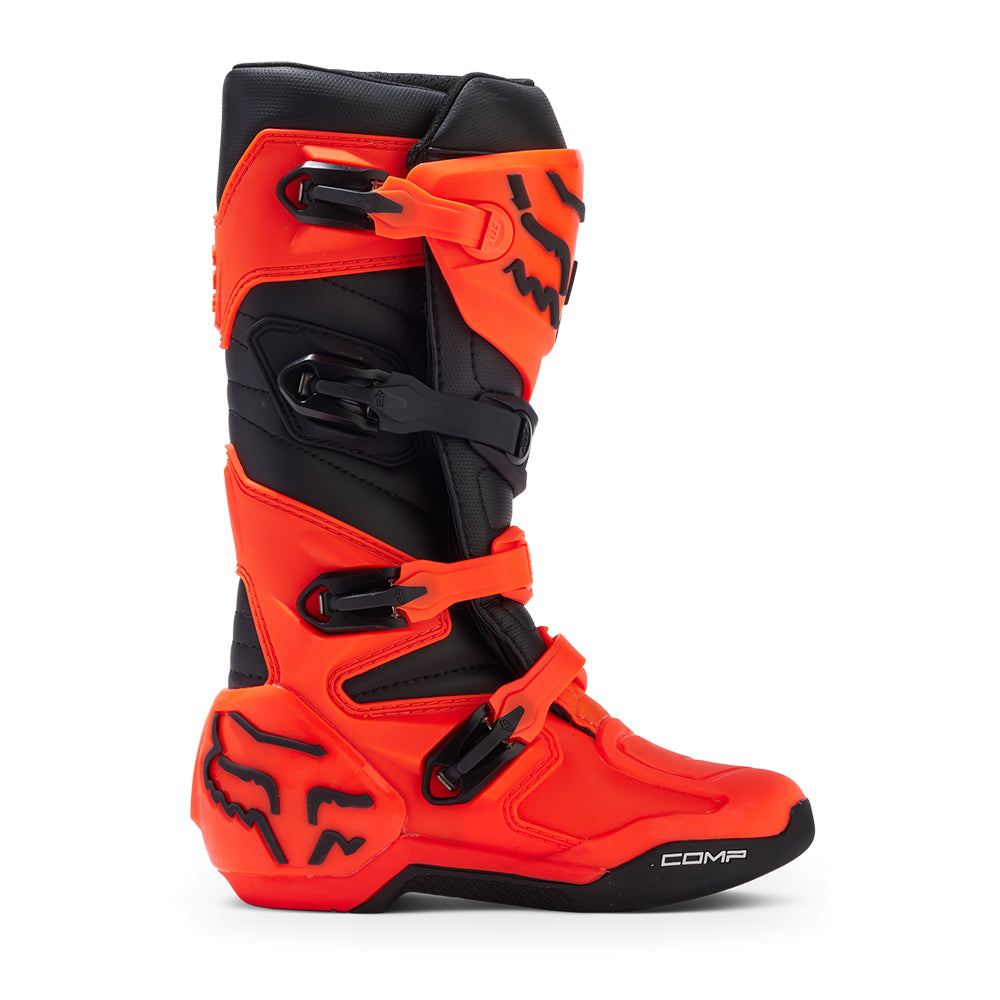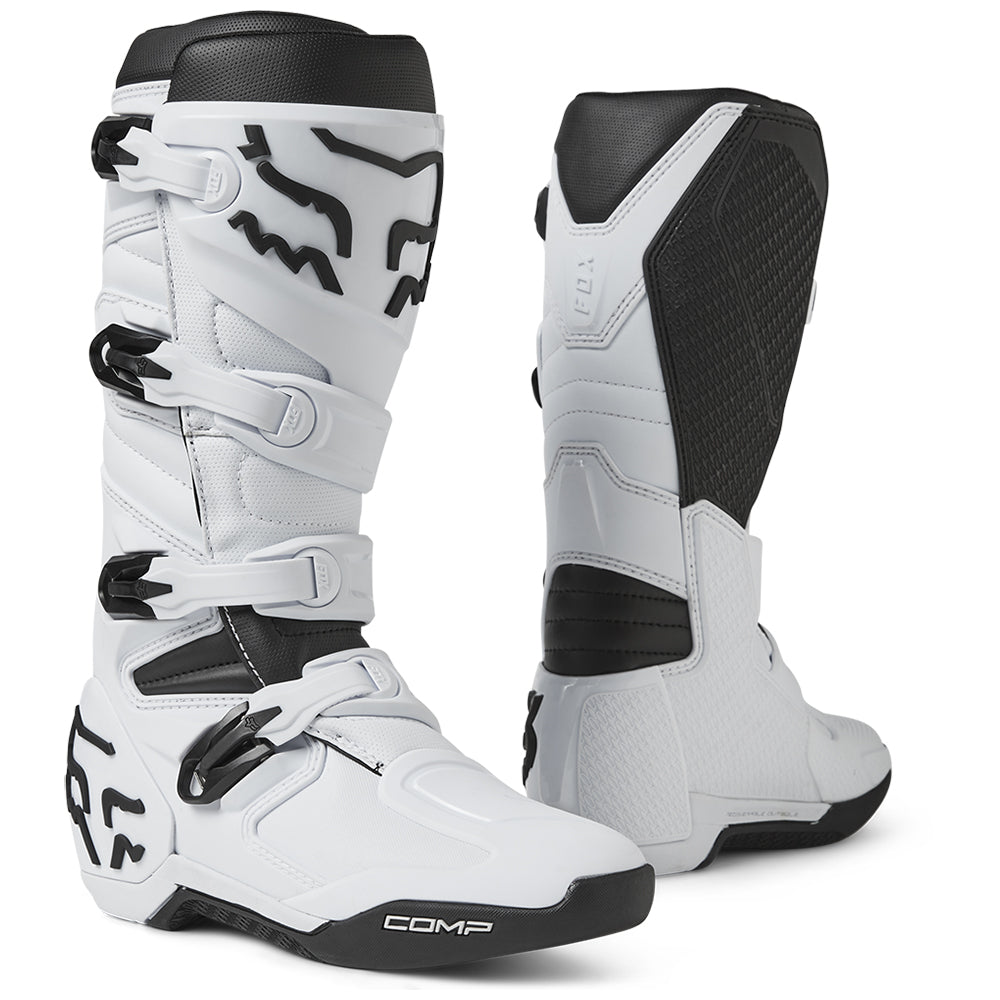 These boots provide support and protection in both track and Offroad situations, with the TPU shin plate, ankle, toe, heel caps, burn guard, and calf guards designed to provide the essential coverage you're after. The new, adjustable four-buckle closure system offers a secure and locked-in fit you can rely on. In addition, the internal composite insole board delivers stability and support from toe to heel and side-to-side on the pegs, while our exclusive Fox PosiTac™ rubber compound provides improved durability and unprecedented grip on the outsole, Best of all the Comp can be resoled, extending the life of these essential performance motocross boots.