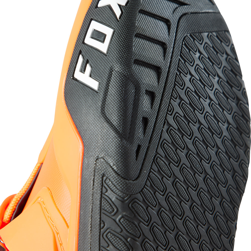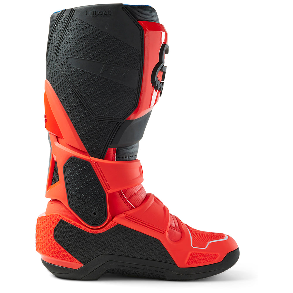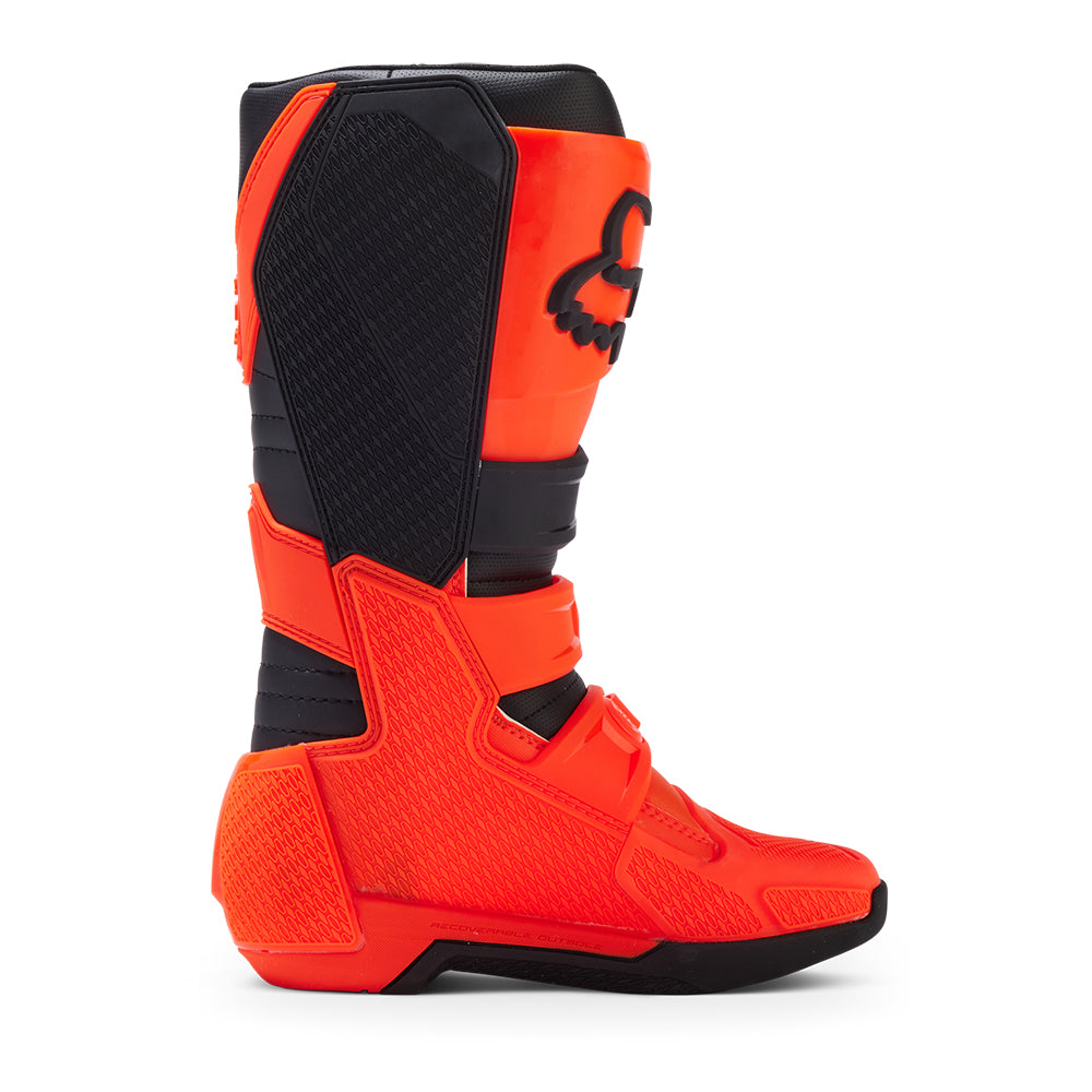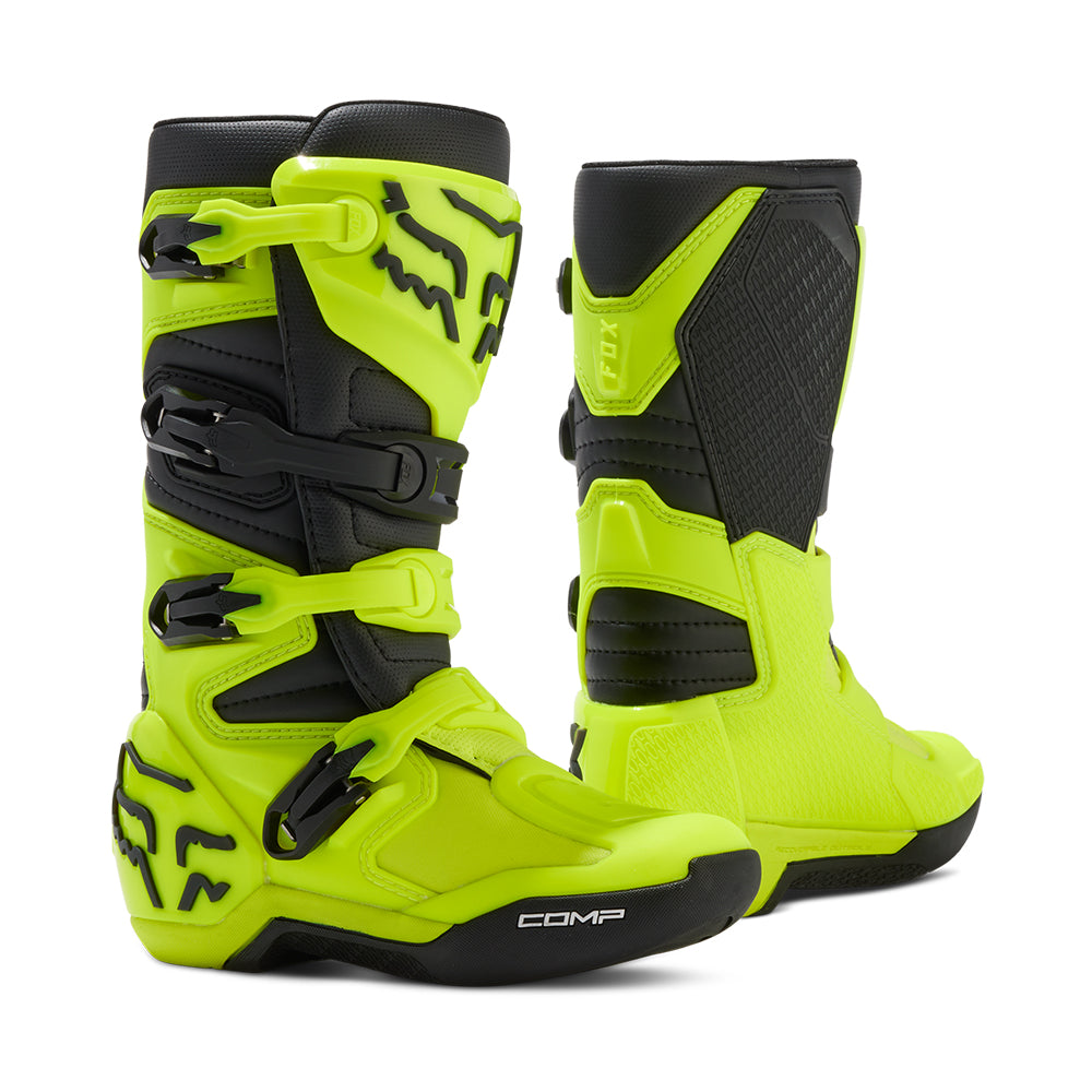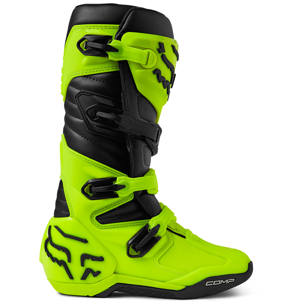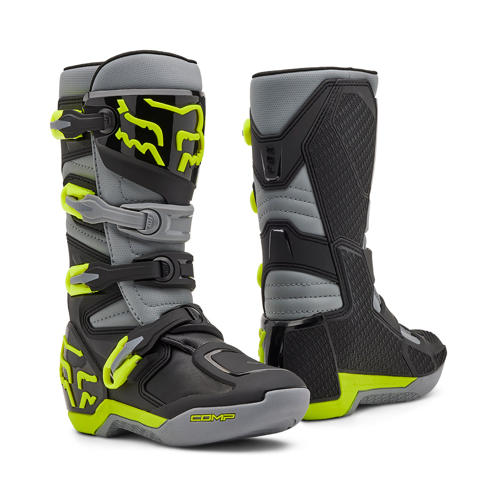 These boots provide support and protection in both track and Offroad situations, with the TPU shin plate, ankle, toe, heel caps, burn guard, and calf guards designed to provide the essential coverage you're after. The new, adjustable four-buckle closure system offers a secure and locked-in fit you can rely on. In addition, the internal composite insole board delivers stability and support from toe to heel and side-to-side on the pegs, while our exclusive Fox PosiTac™ rubber compound provides improved durability and unprecedented grip on the outsole, Best of all the Comp can be resoled, extending the life of these essential performance motocross boots.