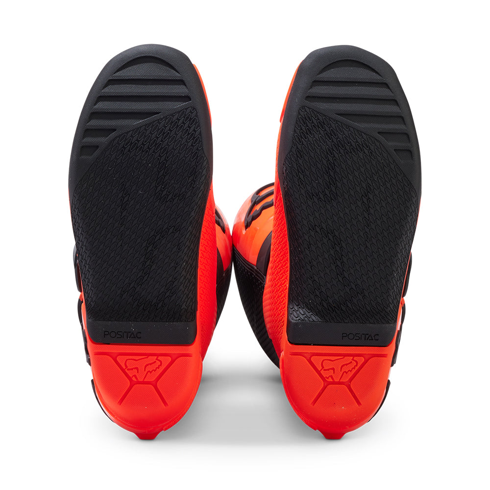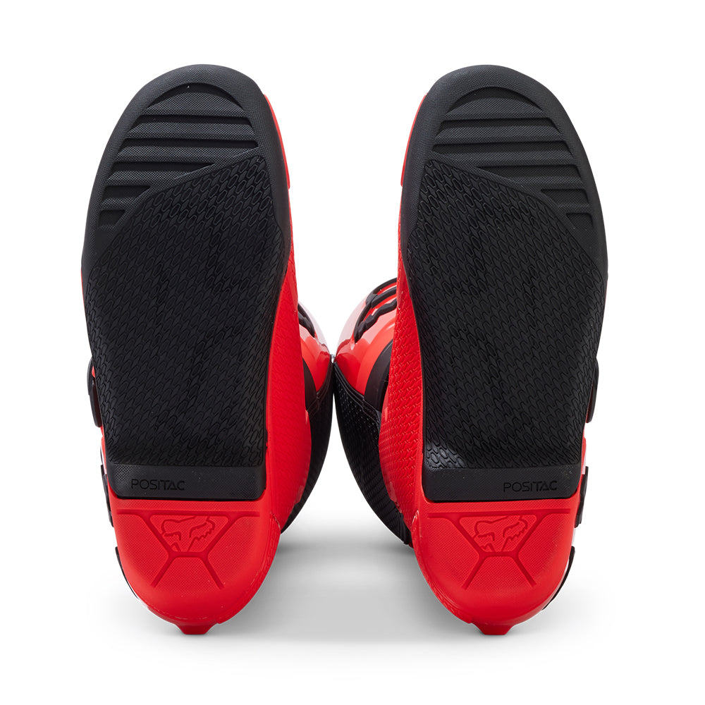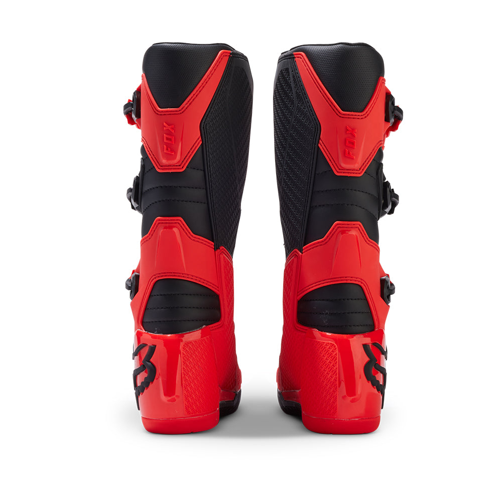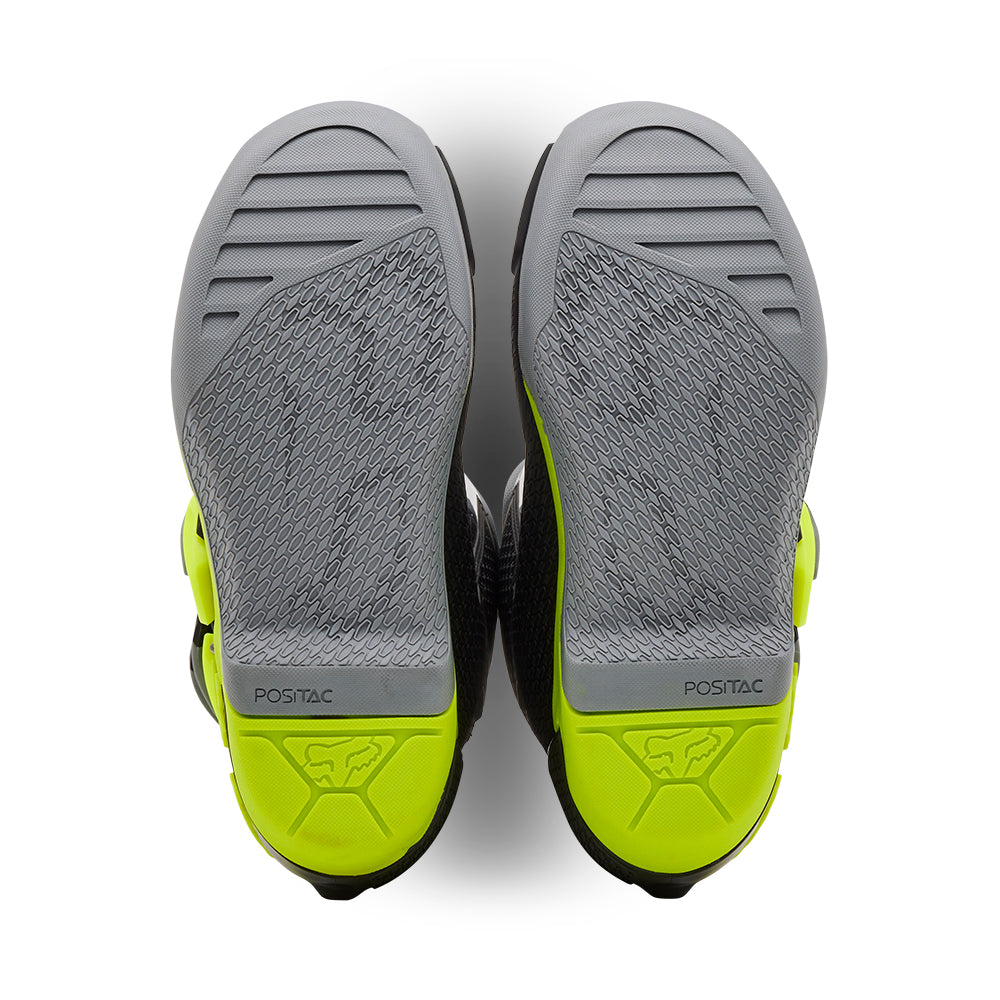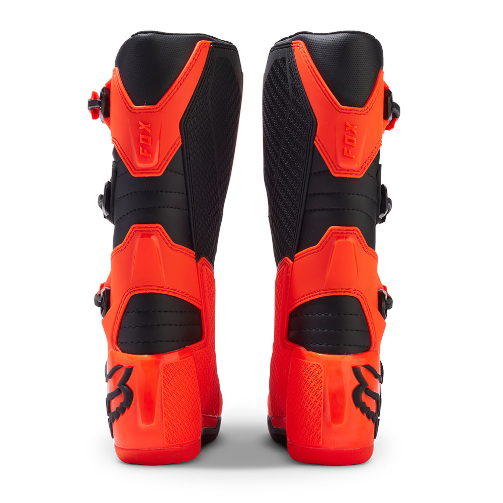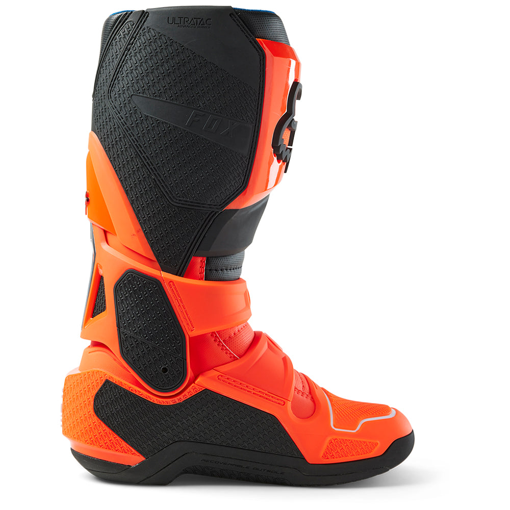These boots provide support and protection in both track and Offroad situations, with the TPU shin plate, ankle, toe, heel caps, burn guard, and calf guards designed to provide the essential coverage you're after. The new, adjustable four-buckle closure system offers a secure and locked-in fit you can rely on. In addition, the internal composite insole board delivers stability and support from toe to heel and side-to-side on the pegs, while our exclusive Fox PosiTac™ rubber compound provides improved durability and unprecedented grip on the outsole, Best of all the Comp can be resoled, extending the life of these essential performance motocross boots.