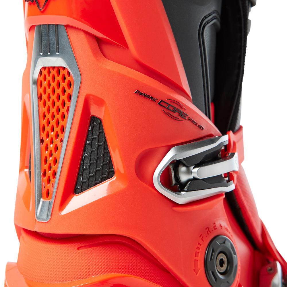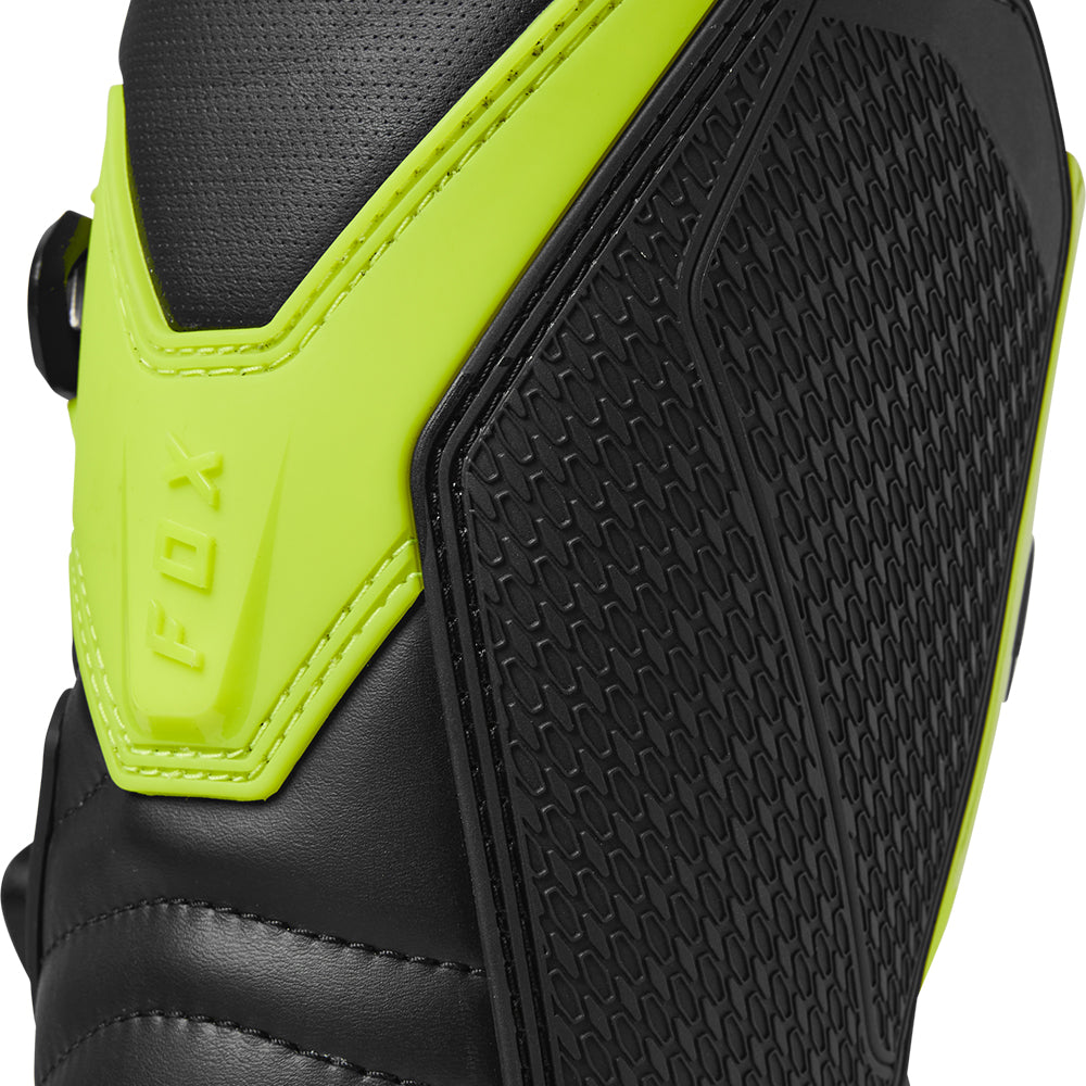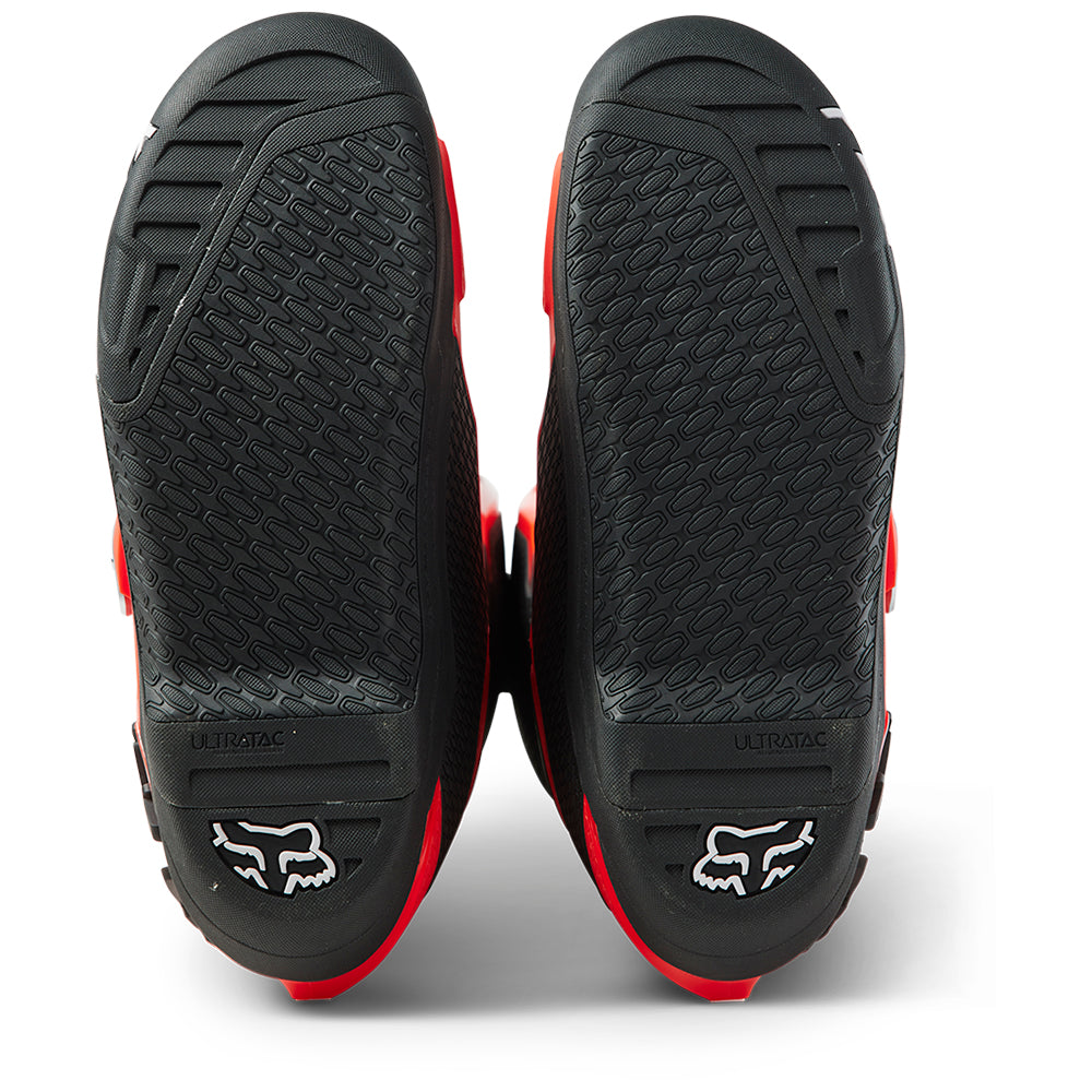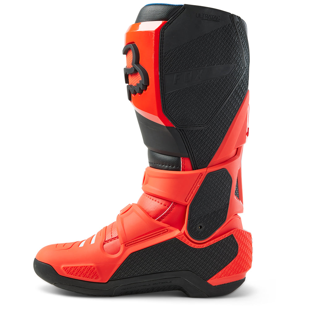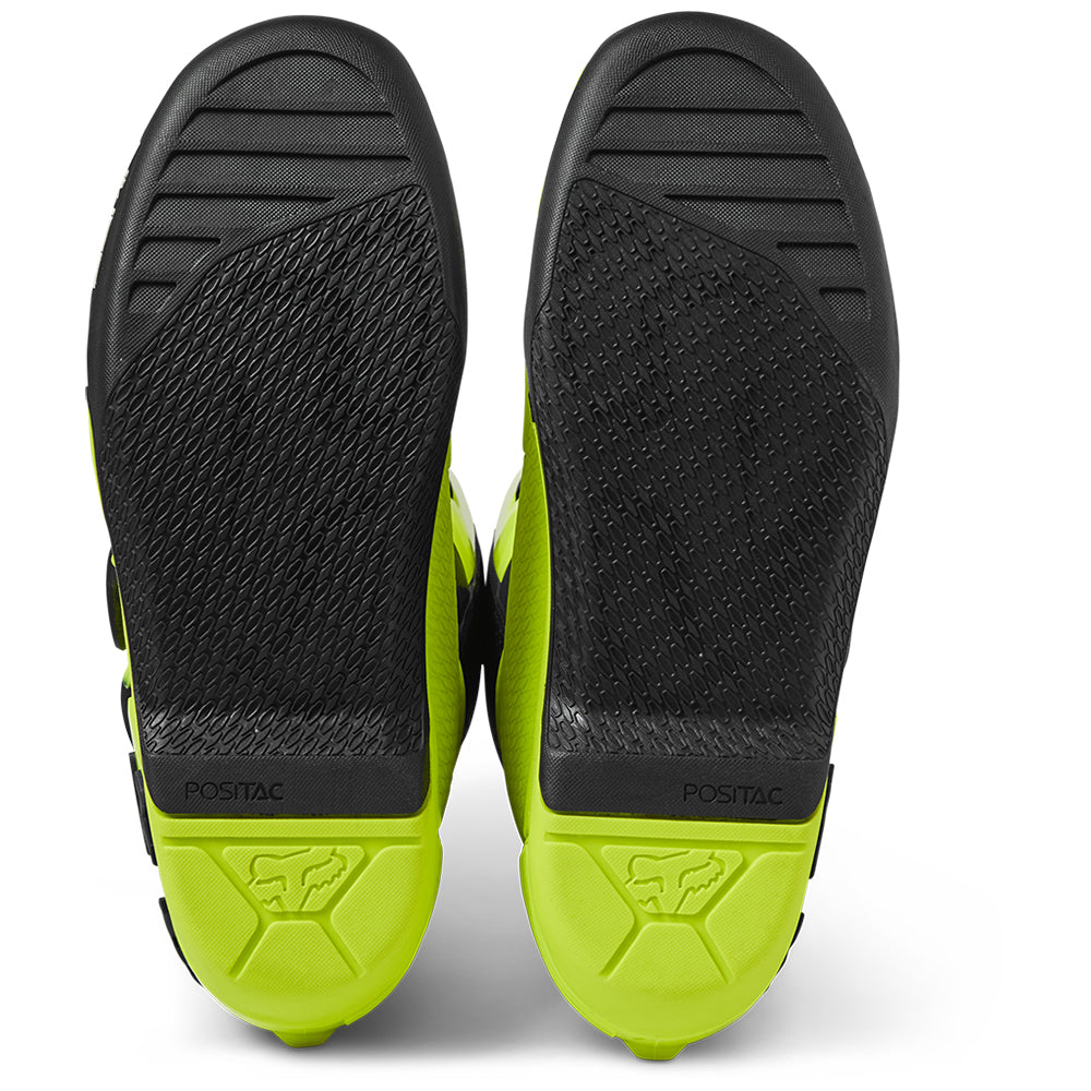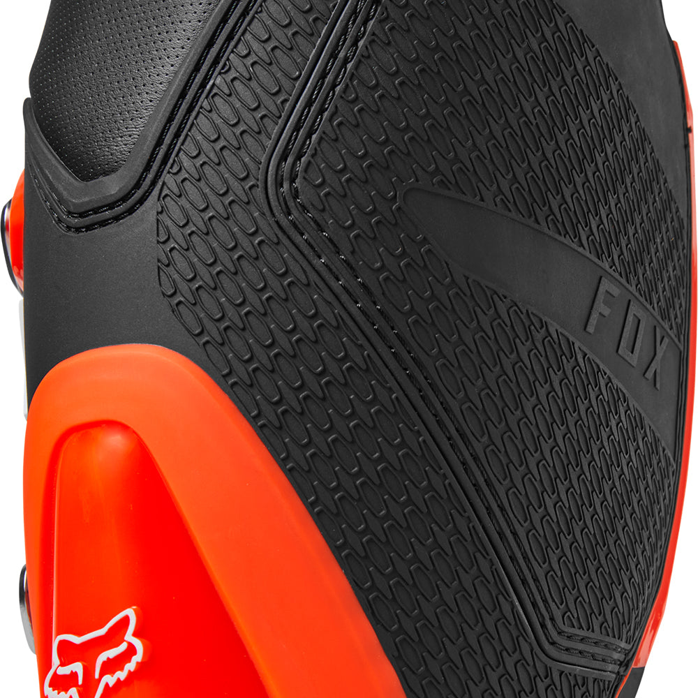 These boots provide support and protection in both track and Offroad situations, with the TPU shin plate, ankle, toe, heel caps, burn guard, and calf guards designed to provide the essential coverage you're after. The new, adjustable four-buckle closure system offers a secure and locked-in fit you can rely on. In addition, the internal composite insole board delivers stability and support from toe to heel and side-to-side on the pegs, while our exclusive Fox PosiTac™ rubber compound provides improved durability and unprecedented grip on the outsole, Best of all the Comp can be resoled, extending the life of these essential performance motocross boots.