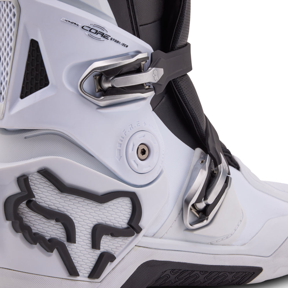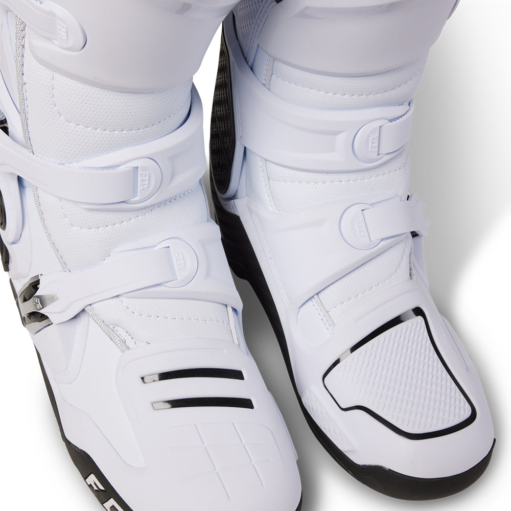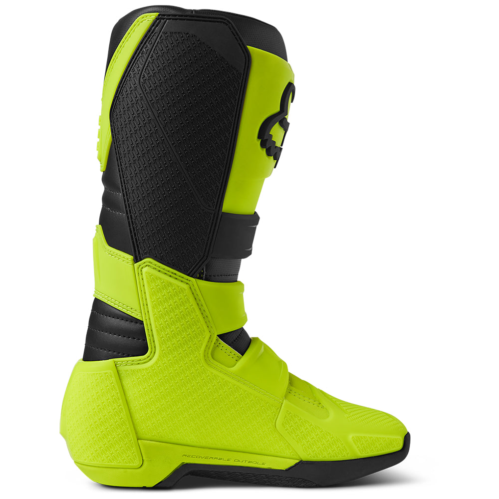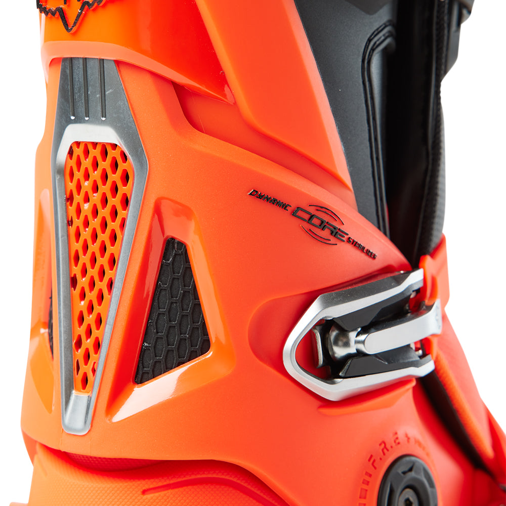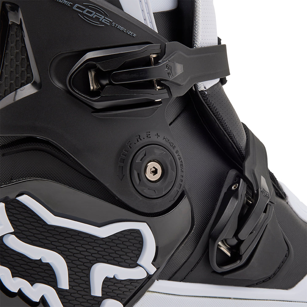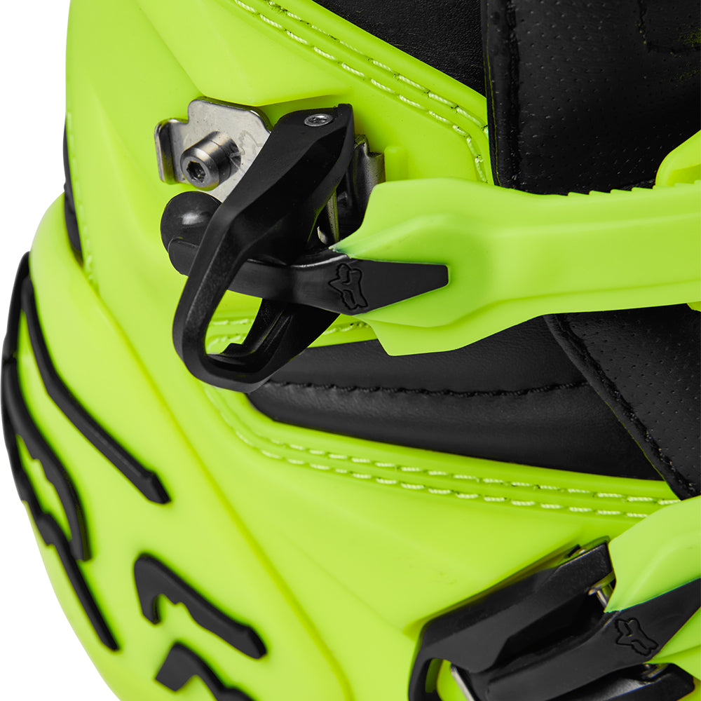 These boots provide support and protection in both track and Offroad situations, with the TPU shin plate, ankle, toe, heel caps, burn guard, and calf guards designed to provide the essential coverage you're after. The new, adjustable four-buckle closure system offers a secure and locked-in fit you can rely on. In addition, the internal composite insole board delivers stability and support from toe to heel and side-to-side on the pegs, while our exclusive Fox PosiTac™ rubber compound provides improved durability and unprecedented grip on the outsole, Best of all the Comp can be resoled, extending the life of these essential performance motocross boots.