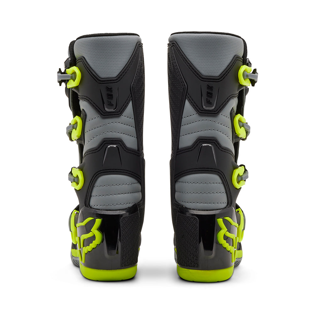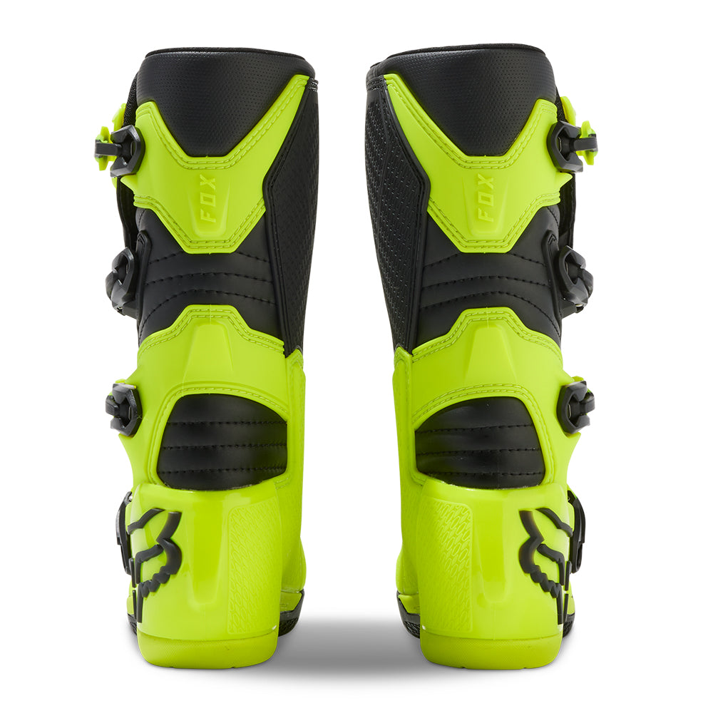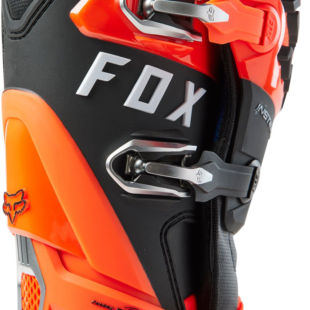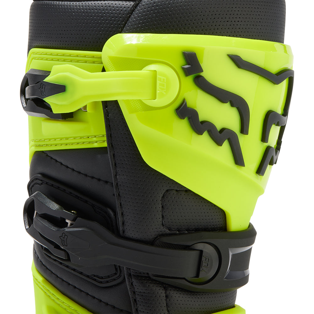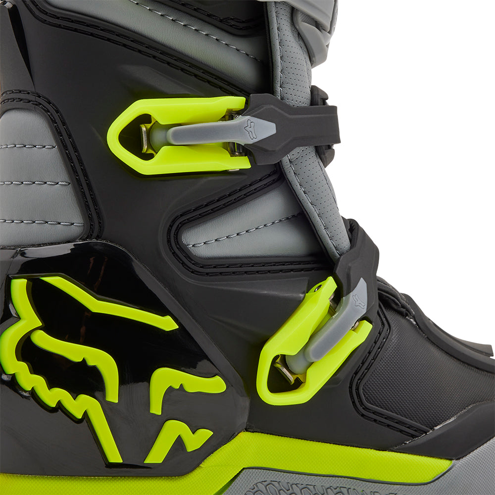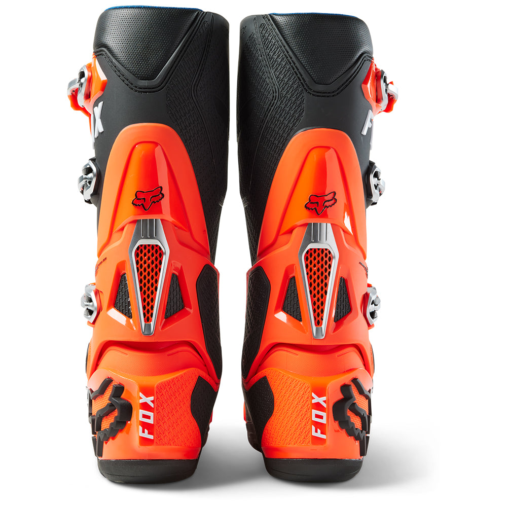 These boots provide support and protection in both track and Offroad situations, with the TPU shin plate, ankle, toe, heel caps, burn guard, and calf guards designed to provide the essential coverage you're after. The new, adjustable four-buckle closure system offers a secure and locked-in fit you can rely on. In addition, the internal composite insole board delivers stability and support from toe to heel and side-to-side on the pegs, while our exclusive Fox PosiTac™ rubber compound provides improved durability and unprecedented grip on the outsole, Best of all the Comp can be resoled, extending the life of these essential performance motocross boots.