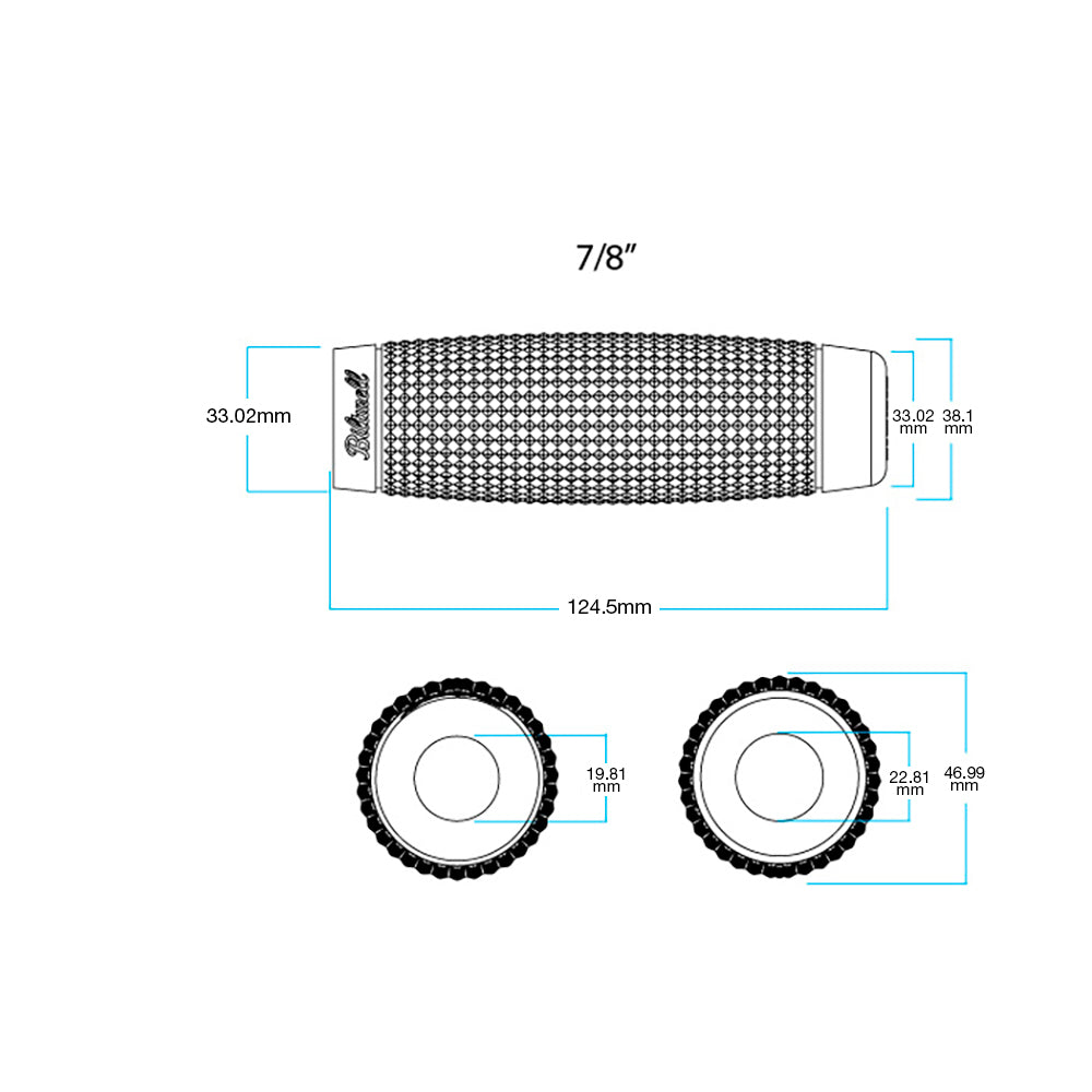 Football-shaped cross section is fat in the middle and smaller on both ends to follow the contours of your open fist. Super durable and great looking, Recoil is our classic chopper grip