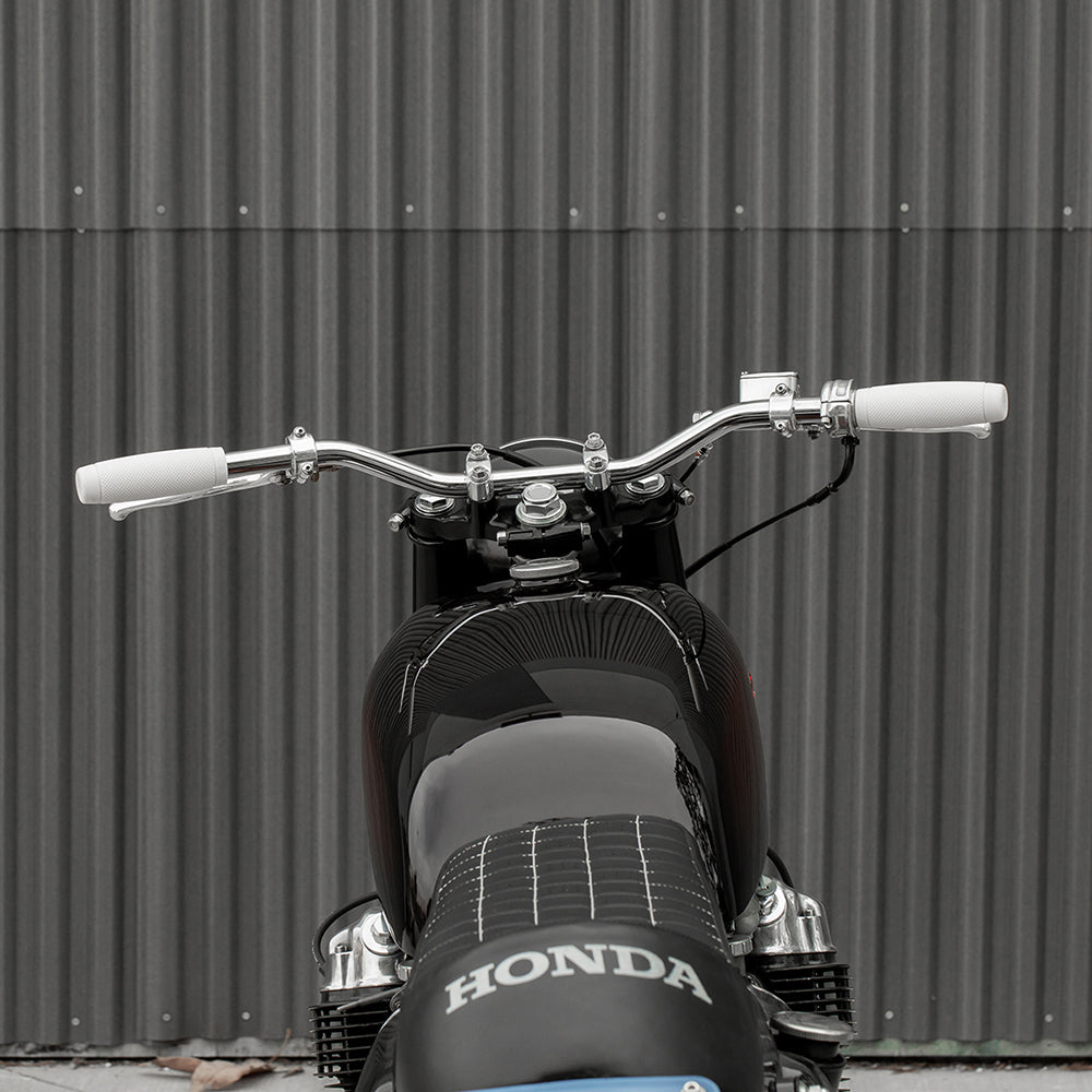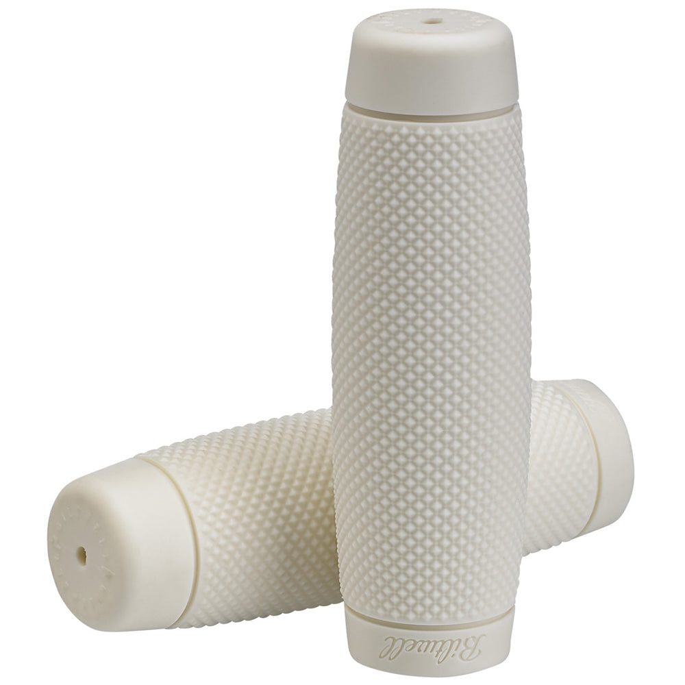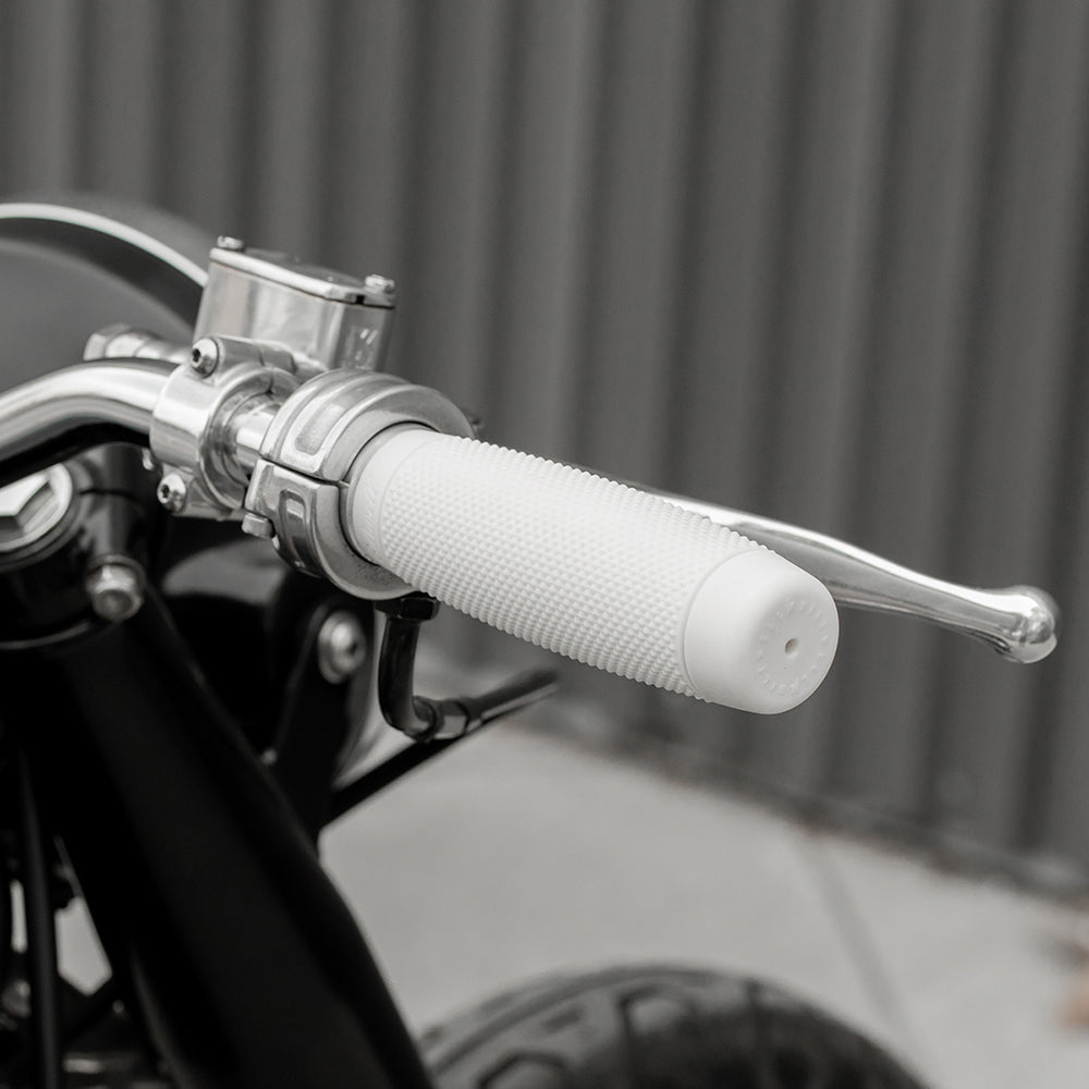 Football-shaped cross section is fat in the middle and smaller on both ends to follow the contours of your open fist. Super durable and great looking, Recoil is our classic chopper grip
