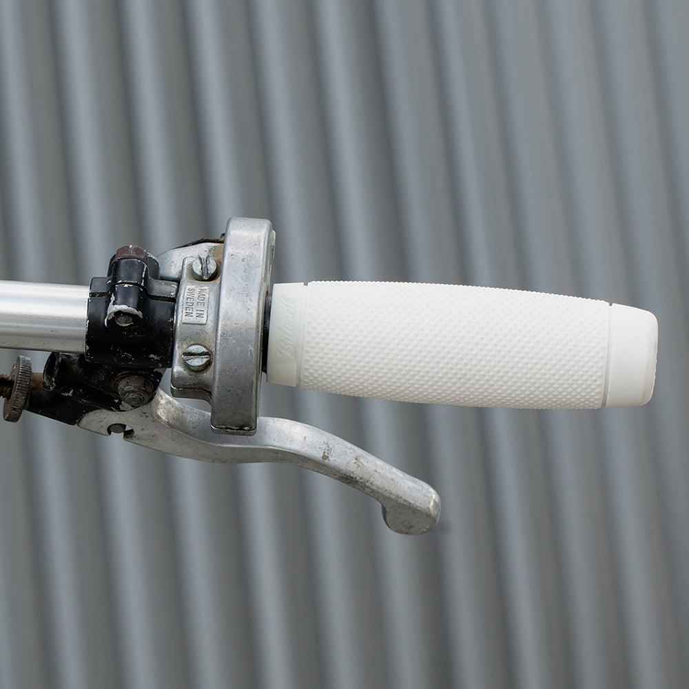 Counterintuitive though it might seem, aerosol WD-40 spray lubricant is our chemical of choice for installing Biltwell molded TPV grips. "But it's oil!" you say. Yes, but WD-40's combination of aerosol propellant and organic-based lubricant is perfect for sliding tight grips onto clean metal tubes. A quick 1 or 2-second blast into the open end of the grip is all it takes. Once installed, WD-40's chemical compound melts the grip interior just enough to make it stick to the bar like glue, without the mess. IMPORTANT: Wait 24 hours after installation before riding to give grips time to set up on the bars. Immediately after installation you can add safety wire wraps to both ends of the grips; this old motocross trick works great to reduce grip slip on the bars and throttle tube.