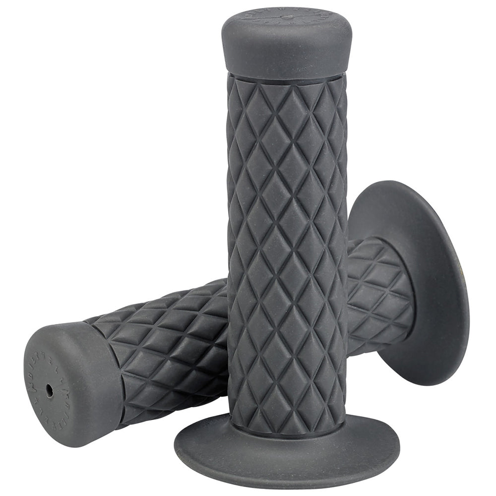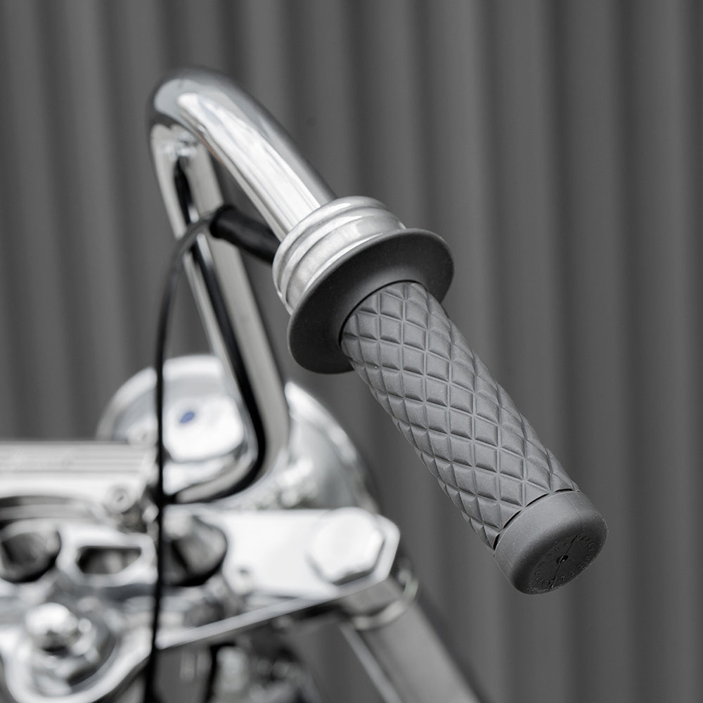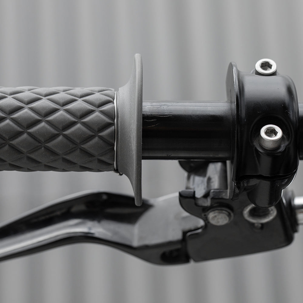 Thruster uses the same padded diamond surface as our Torker grip, but features a tall inside flange and thick molded end cap for a retro MX look and feel.