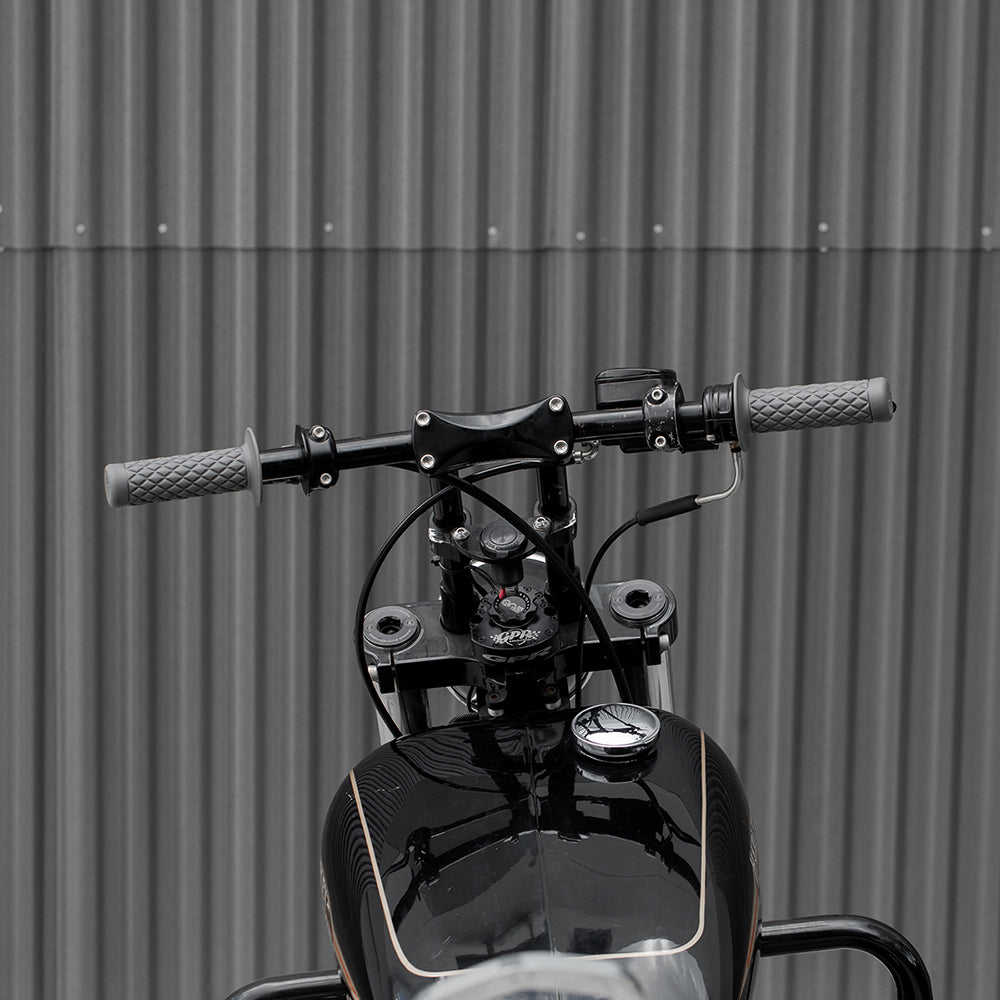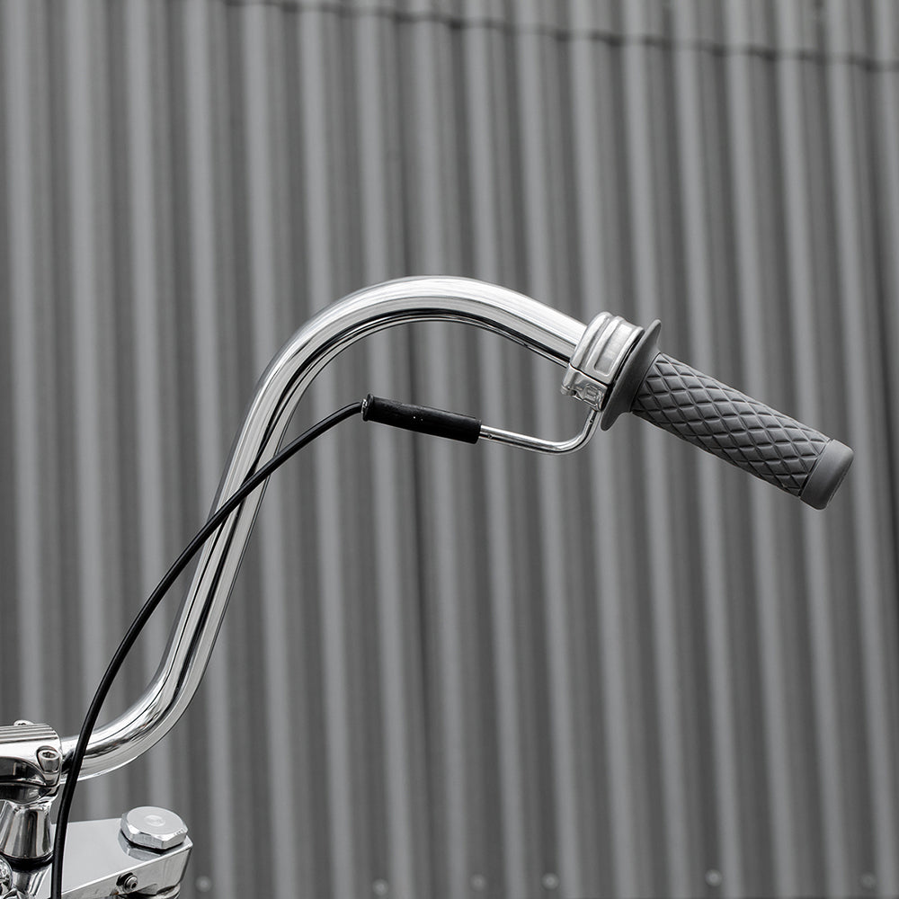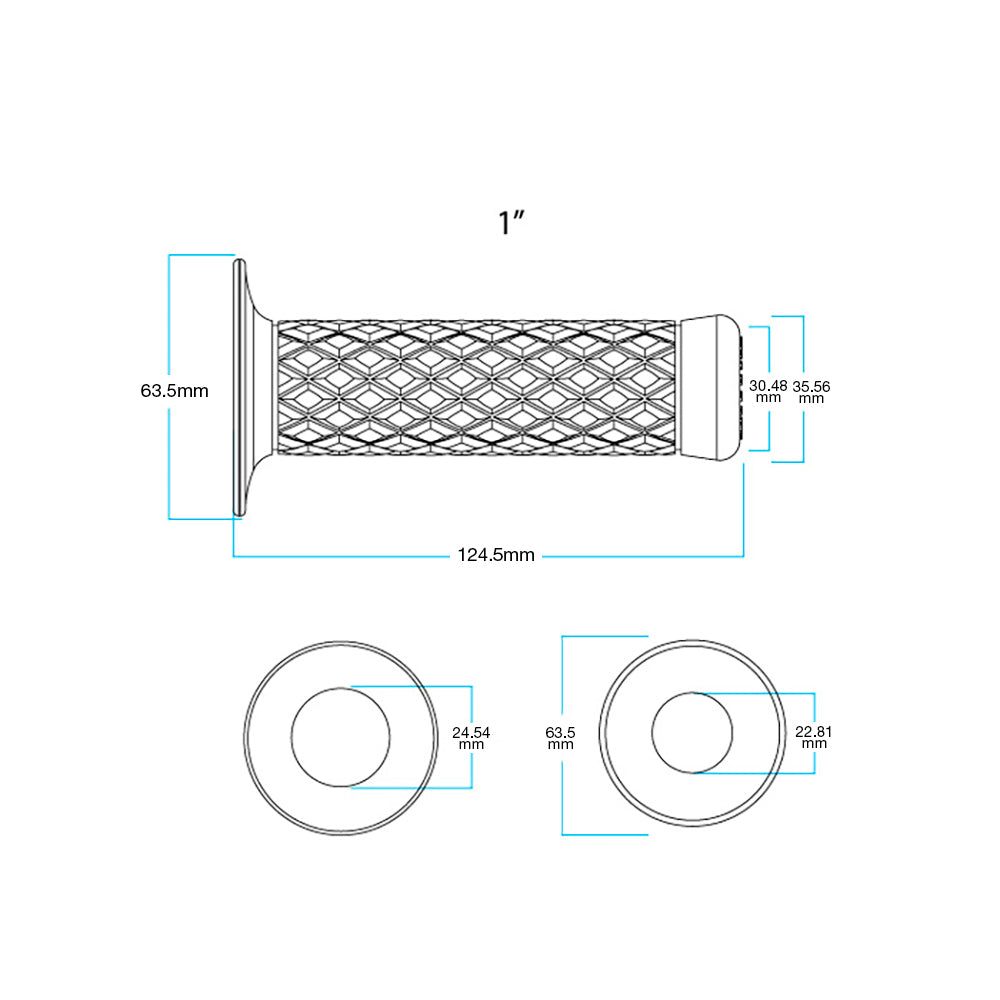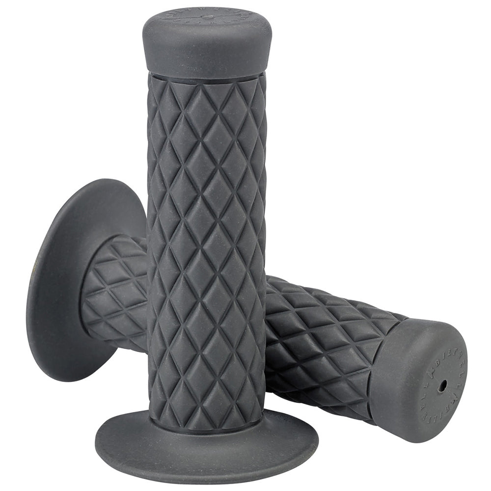 Thruster uses the same padded diamond surface as our Torker grip, but features a tall inside flange and thick molded end cap for a retro MX look and feel.