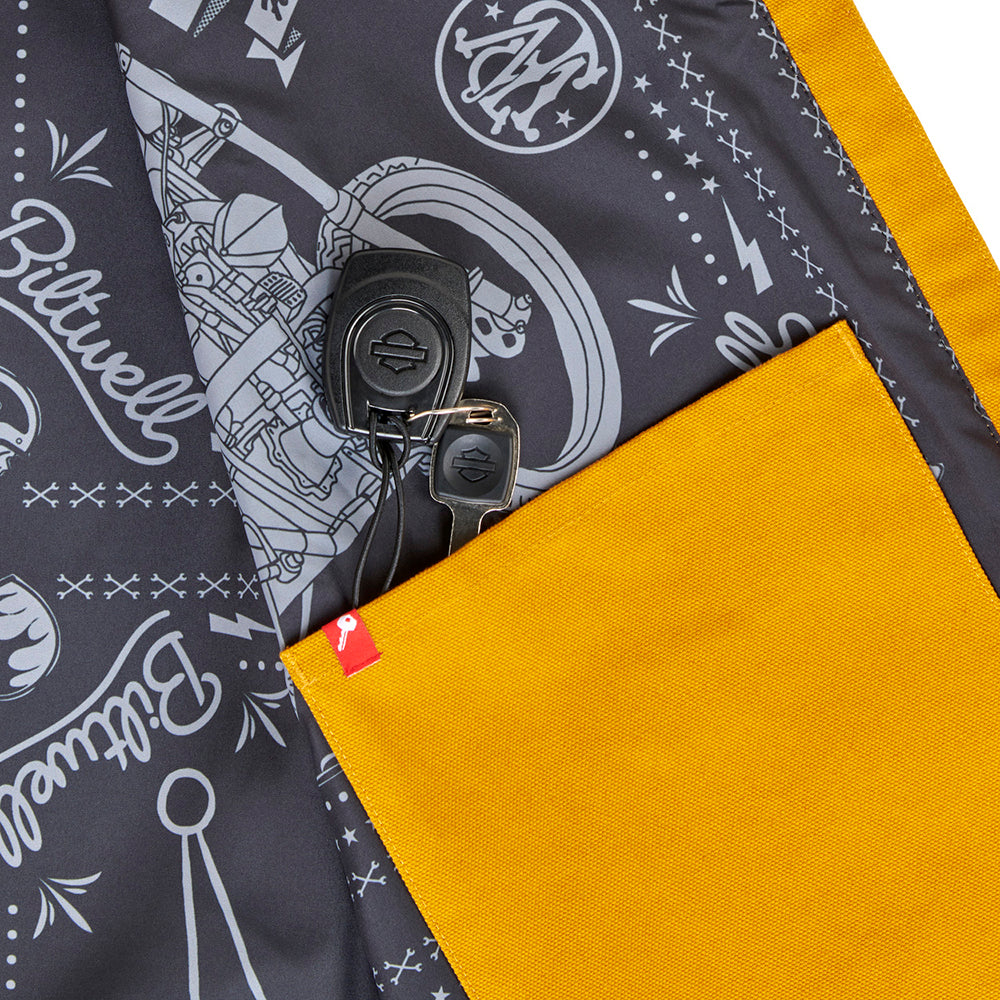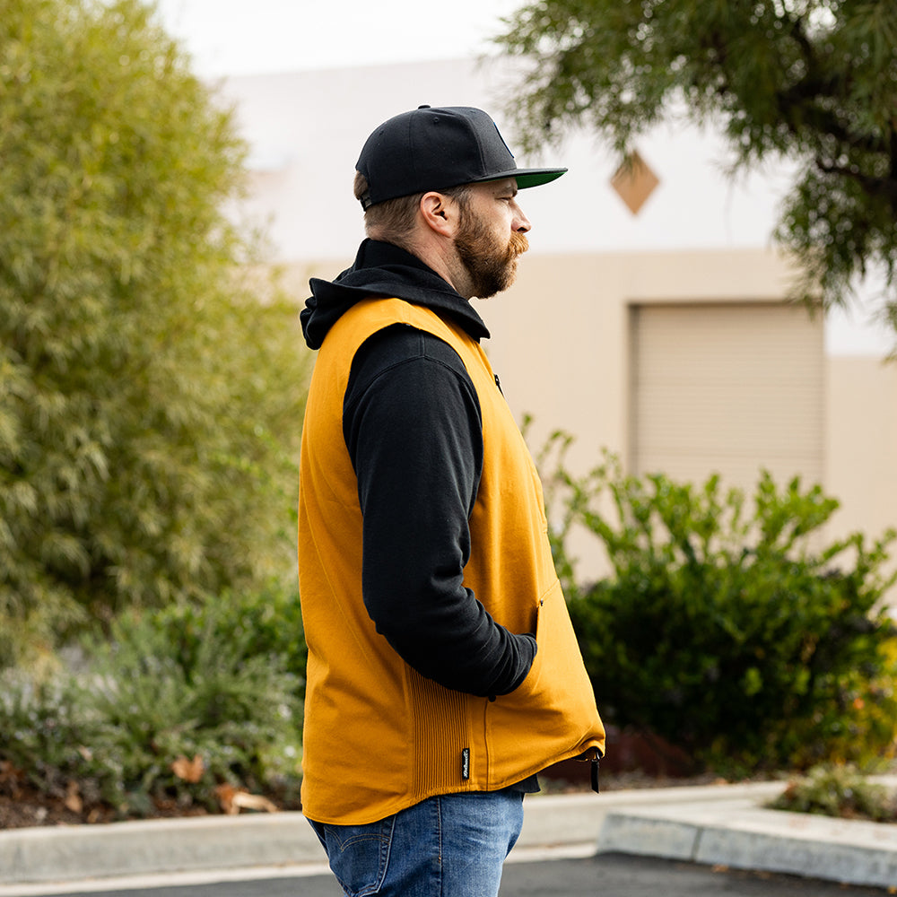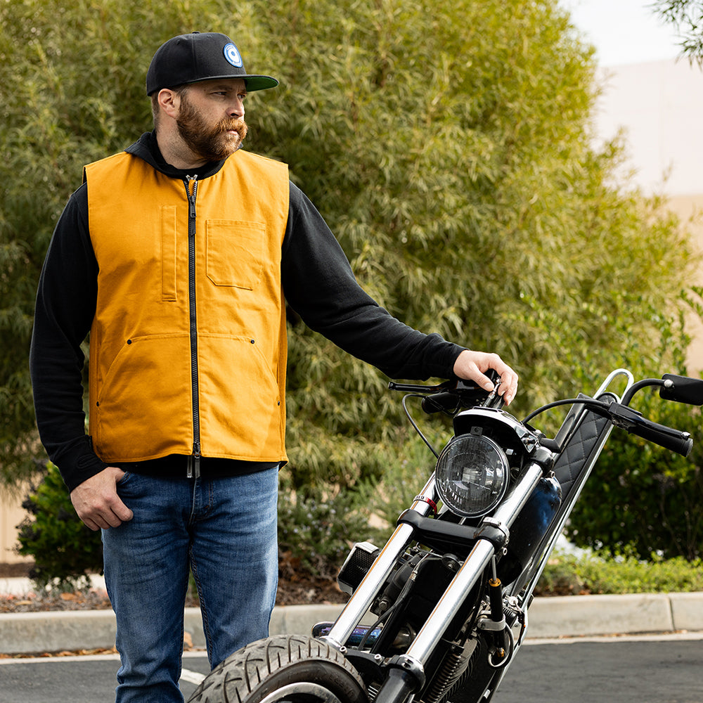 Every bike rider needs a rugged vest in their gear arsenal, and our 4-Speed Vest answers the call. Its heavy-duty cotton canvas exterior features generous sizing and elasticated expansion panels so you can layer it over a shirt, hoodie, or reinforced riding jacket. Two-way zipper with Hypalon pulls lets you fine-tune fit at the collar and waist. A breathable polyblend liner is built in to keep you warm and comfortable. Two interior and four exterior pockets are perfect for hauling gloves, glasses, and other EDC essentials.